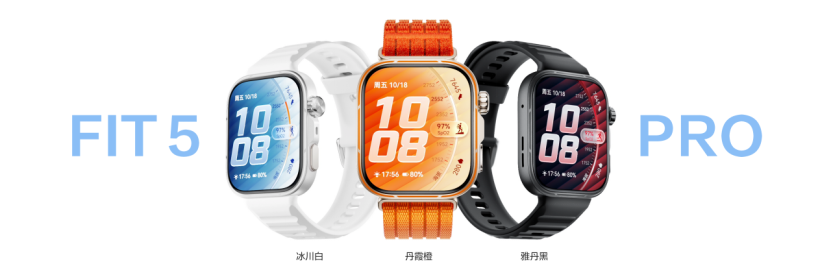 HUAWEI WATCH FIT 5系列以多元活力配色诠释年轻态度。HUAWEI WATCH FIT 5提供光织银、风信紫、悦动白、韵律黑、向新绿五款活力配色; HUAWEI WATCH FIT 5 Pro提供丹霞橙、冰川白、雅丹黑三款配色,其表圈采用精密注油工艺,亮眼独特。值得一提的是,冰川白特别采用航天级纳米瓷金属工艺,兼顾高级质感与可靠特性。