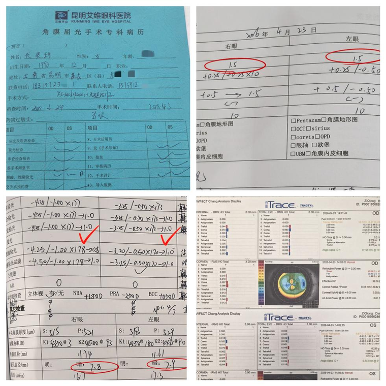 对于暗瞳数值偏大的近视人群而言,传统激光手术的选择往往需要谨慎考量。如今,随着眼科诊疗技术的持续升级与迭代,这类眼部条件的摘镜限制正在逐步改善。近期,昆明艾维眼科医院员工代资琼完成全光塑近视手术满一年的复查数据,直观体现出个性化近视矫正方案的良好临床效果。