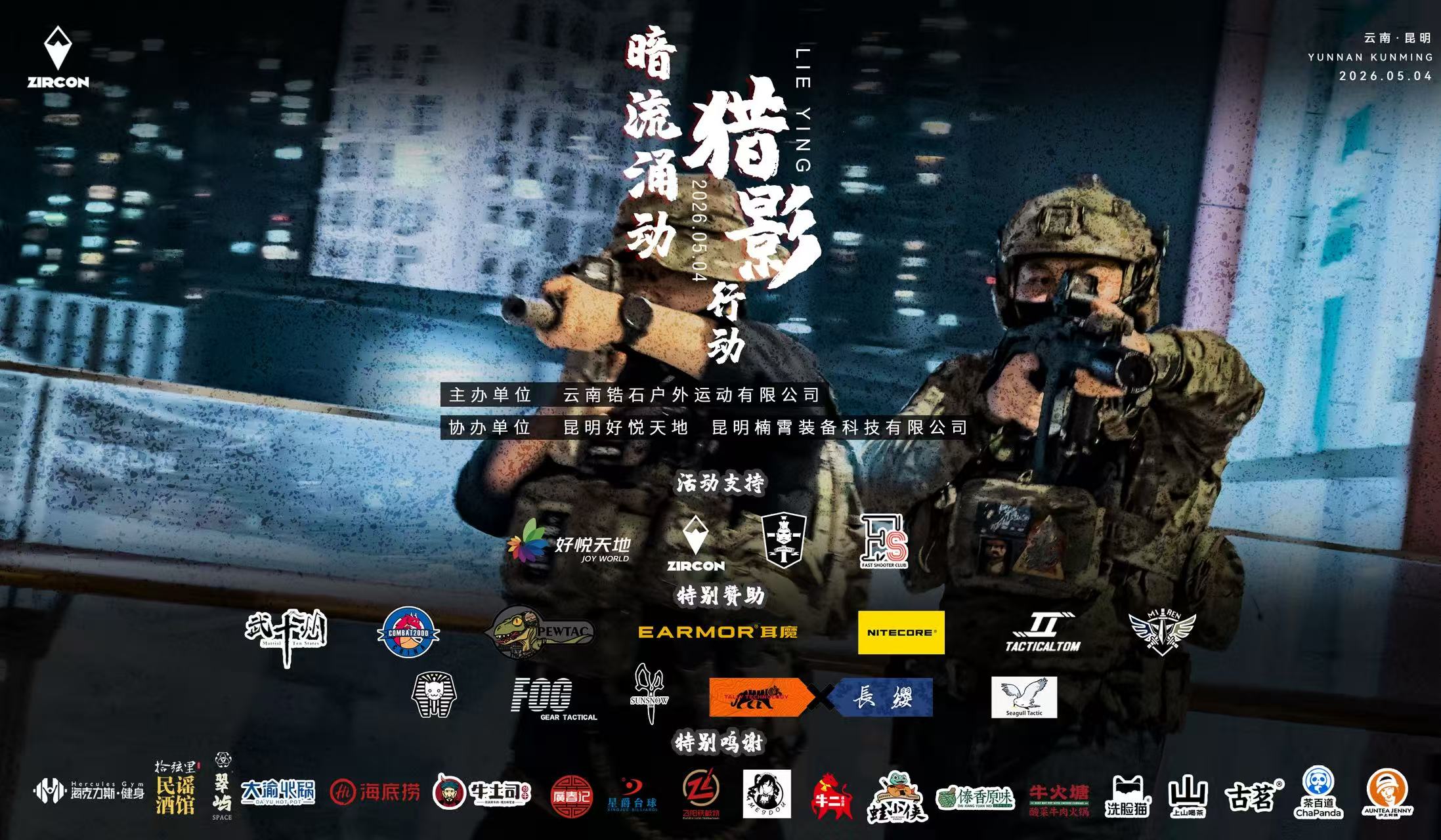昆明信息港讯 5月4日,由云南锆石户外运动有限公司联合昆明好悦天地策划的“暗流涌动2026·猎影行动”军事推演活动将在昆明好悦天地正式启动。