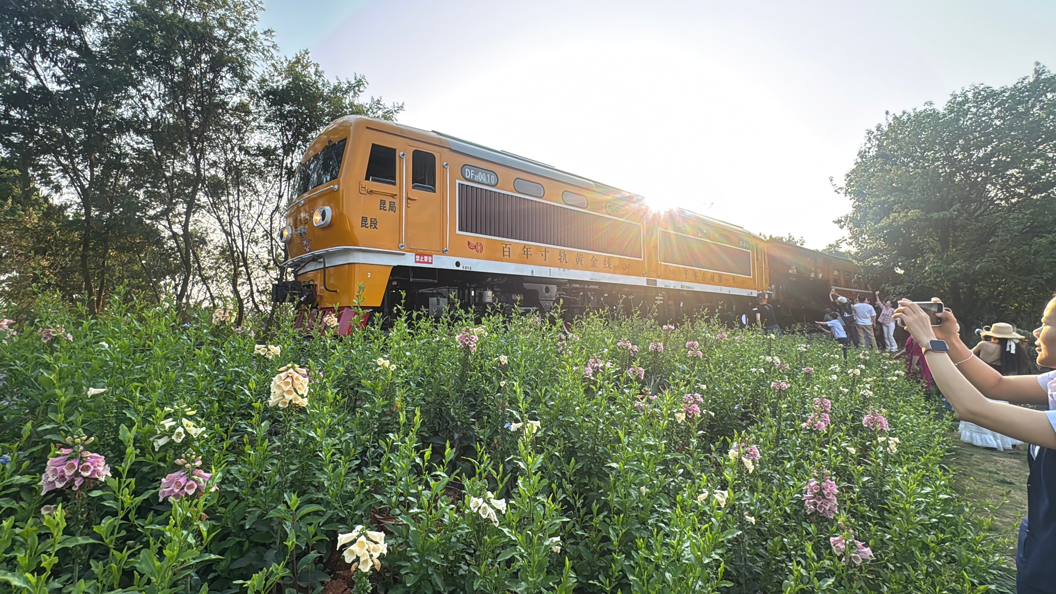 很出片!地台寺三角梅在百年米轨上绽放