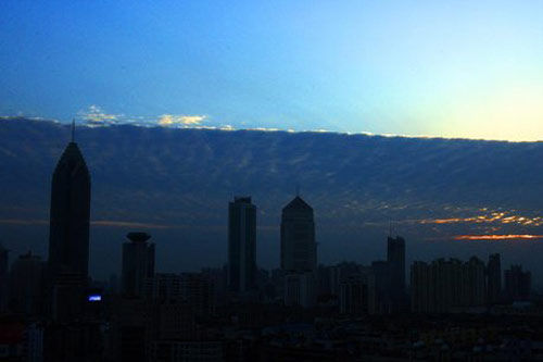 湖北多地出现阴阳天 云彩整齐如刀切