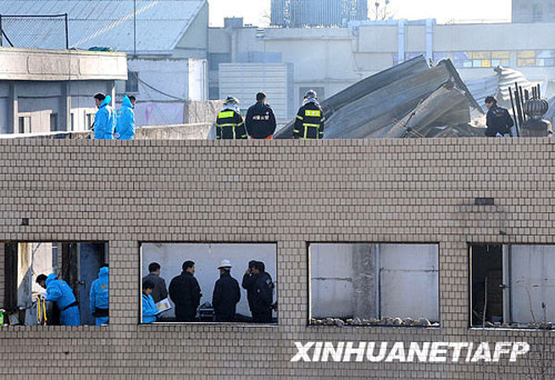 1月20日,在韩国首都首尔,警方人员在大火被扑灭后的大楼上展开调查。新华社/法新