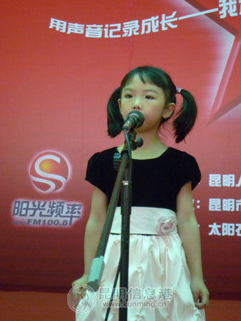 昆明信息港讯 6月13日,昆明市第四届“好娃娃杯”少儿普通话朗诵大赛复赛在昆明电台多功能厅如期举行,100名经过网络投票和专家评选产生的小选手齐聚一堂,各显身手。