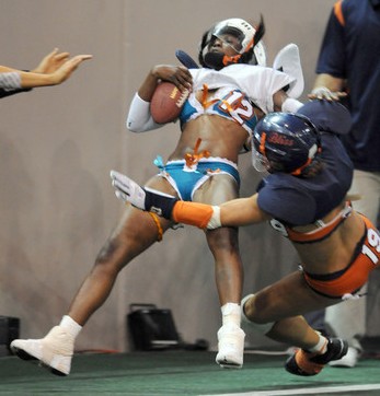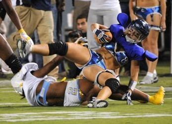 “内衣碗”女子橄榄球赛,是美国关注度最高的橄榄球年度比赛“超级碗”中场休息时由FOX付费频道播出的比赛,比赛的看点是身着性感内衣的美女模特们奔驰赛场拼个“你死我活”。以上是内衣碗比赛精彩瞬间。