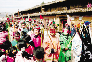 阳宗镇阳宗海畔有一个大集镇名叫新街,新街东侧山麓有一座始建于明朝弘治丁巳1497年的龙泉古寺。自龙泉寺建成后,新街附近的村民每年都要举办元宵节的上元盛会(后称龙泉盛会),坝子中的关索戏、龙灯、狮子、花灯、打秧佬、般打等古老的文艺表演都要在山上表演。