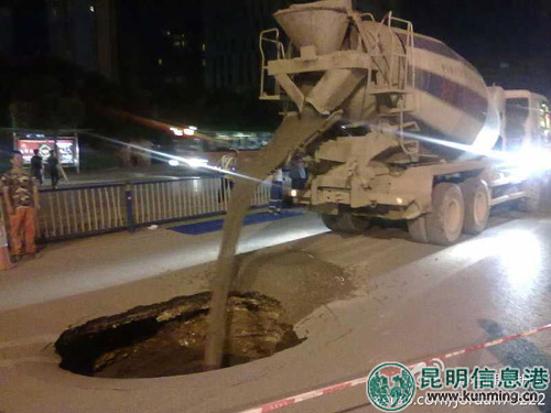 昆明信息港讯 通讯员龚庆萍 8月21日晚10点左右,一市政工程在北京路盾构掘进施工中,地面出现一个长2米、宽1.5米的塌陷洞坑,施工方立即启动应急预案,用混凝土回填,8月22日凌晨2点前路面交通恢复正常。