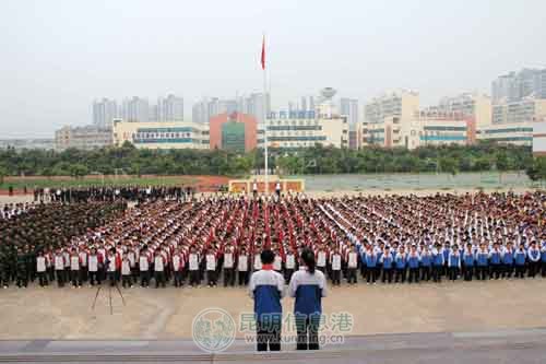 昨日,昆明市亨德森高新一中举行了隆重而庄严的升旗仪式,全体师生齐声高唱国歌,播种新的希望。