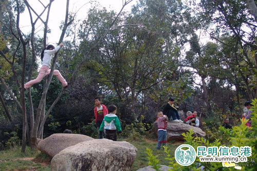 在网友“萧寒”提供的照片中,记者发现,金家河原本清静的林道已“变身”为“万能场所”,其中,一部分景观石似乎成了天然的板凳,供走累、玩累的人随意休憩,而另一些石头则化身为“晾菜石”,上面晒满了做咸菜的茄子片。令人担忧的是,一群孩子正在林中爬上爬下,玩得不亦乐乎,全然不顾自身的安全。而在河道边,甚至还有一位男子当众小便为植物“施肥”……