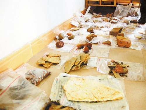 10月20日,受相关部门委托,南宁市博物馆派出专业技术人员对此地开展抢救性发掘。至今,已共布探方32个,方向均为315°,分A、B两区,共揭露遗址面积800平方米。目前,大部分探方发掘深距地表约60厘米,局部达80厘米。发现文化遗物近100件,类型主要有石铲、石锛、石斧、石砧、陶器陶片等,以及大量的石器残件和碎片。清理发现多处文化遗迹,为灰坑、灰烬堆积等。在储藏室,记者看到其中不乏体形扁薄硕大,造型奇特,制作精美的大石铲及石斧等。虽历经沧桑,可其仍棱角分明、光滑精致。