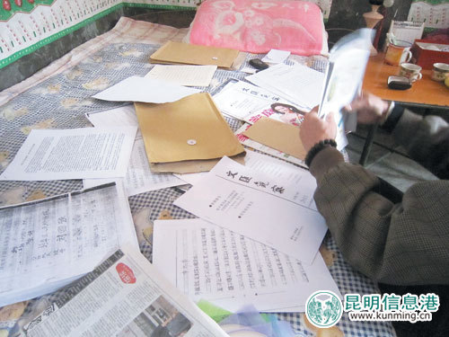 刘国强多年来用于申诉的材料和信件 记者 黎仲阳 摄