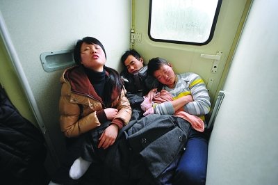 L8556次年年辛苦奔跑,甚至有些年份超员超过50%,却年年满足不了回家旅客的需要。为了减轻铁路承担超过自身承受能力的客流任务的负担,今年铁道部规定,像L8556次这样的“红皮车”,不得超员超过40%、绿皮车不得超员50%,L8556次的担子才感觉轻了些。不过,由于L8556次今年第一年交给南京客运段担当客运任务,春运期间南京段人手也不足,便只能从K8570、K8454次列车上抽调客运人员,从芜湖工务段抽调驻警职工来跑这趟车。由于列车上没有餐车,不少列车员都只能到了南京后再回家吃饭。而家在芜湖的列车员,也只得到达南京后,再坐火车回芜湖吃晚饭……(撰文 杨佳妮 徐媛园 摄影 刘 浏)