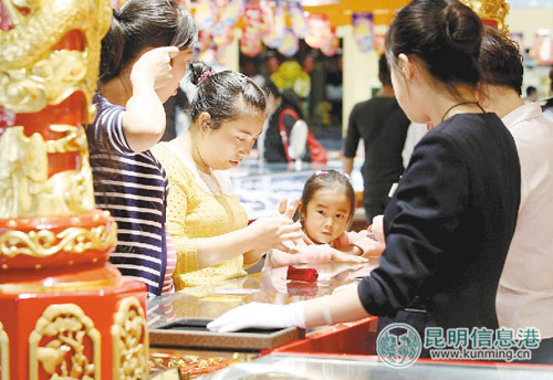 金店工作人员表示,从近期销售情况看,最火的是婚嫁系列,国庆期间结婚办喜事的人多,而国庆节后将再次迎来一个嫁娶旺季,所以热销还将持续下去,可能黄金周过后的人气会更高。(昆明日报 记者孙潇)