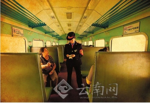 铁轨还是百年前的米轨,只不过车头早已由最早的蒸汽机换成了后来的老式内燃机;车厢也还是1979年生产的车厢,双人、硬座,90度的靠背以及生硬的座位显然与舒适这个形容词并无太