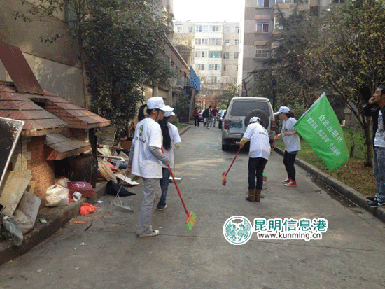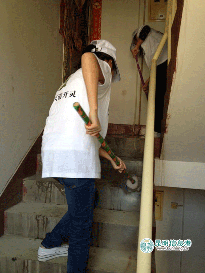分发完打扫工具后几个小志愿者便开始认真打扫起来,有的铲起了牛皮癣,有的捡起了地上的烟头。一位站在旁边的家长说:“孩子参与到这样的活动当中,可以亲身体验到清理垃圾的辛苦,有助于让孩子养成不乱丢垃圾的习惯,保护环境卫生应该从娃娃抓起”。 白云山明兴“爱在云南,创卫昆明”公益活动旨在改善昆明一些较早建盖小区的居住环境以及宣传爱护卫生、呼吁大家养成良好的卫生习惯,为创卫昆明做出贡献。有意向的小区或是低保人员以及需要提供打扫的孤寡老人都可以通过新浪微博与我们取得联系,新浪微博@公益爱在云南;也可以通过电话联系我们,联系电话:0871-3200317。