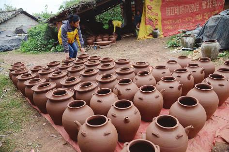 农闲时,村里家家户户都进行陶器生产,烧制米缸、酒坛、花瓶、茶具、煮酒器等陶器品。靠着祖辈传下来的制陶技艺,村民们不用出村,每天都像城里的工人一样,有班上有活干有钱挣。