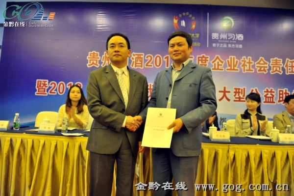 金黔在线讯 3月28日,在一阵热烈的掌声响中,习酒有限责任公司董事长张德芹在成都会展中心作“习酒2012年度企业社会责任报告”后,当场向贵州省青少年发展基金会现场捐赠2000万元,用于资助至少3000名贫困学子圆大学梦。至此,在全国数百家媒体及公益组织共同见证下,2013“习酒·我的大学”大型公益助学活动正式启动。