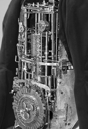 “写字机器人”体内拥有约6000多个零部件,包含40个可替换的内部凸轮,只要更换这些凸轮,“写字机器人”就可以写出不同的字词和句子,从理论上说,只要重新定制和排列不同的凸轮,“写字机器人”就可以写出任何需要的句子。这意味着“写字机器人”可以被“编程”,这些凸轮的功能就好像电脑内的各种程式一样,所以这个“写字机器人”也被一些科学家视作现代计算机的“始祖”。