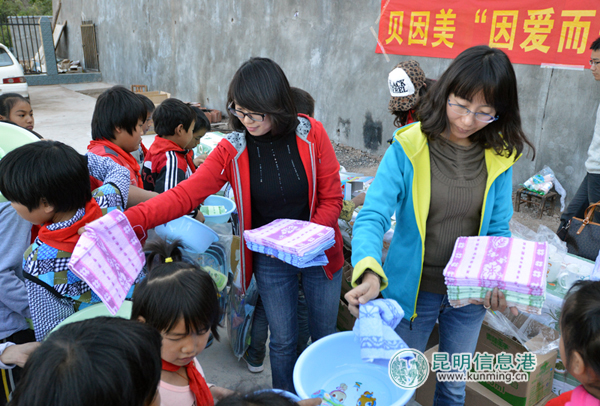 贝因美昆明分公蔡总坦言,和大家做了一个小时的“同学”,他没想到当地孩子们生活那么艰苦,和大城市里吃穿不愁的孩子比起来,难免让人心酸。