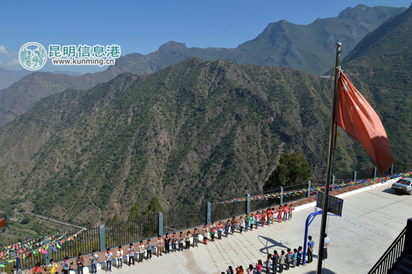 建在海拔2010多米陡坡上的发展小学。记者林坚摄