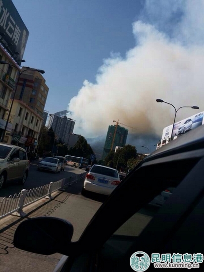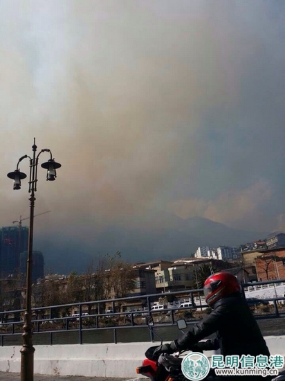 云南大理苍山突发火灾 下关市区烟雾弥漫(图)
