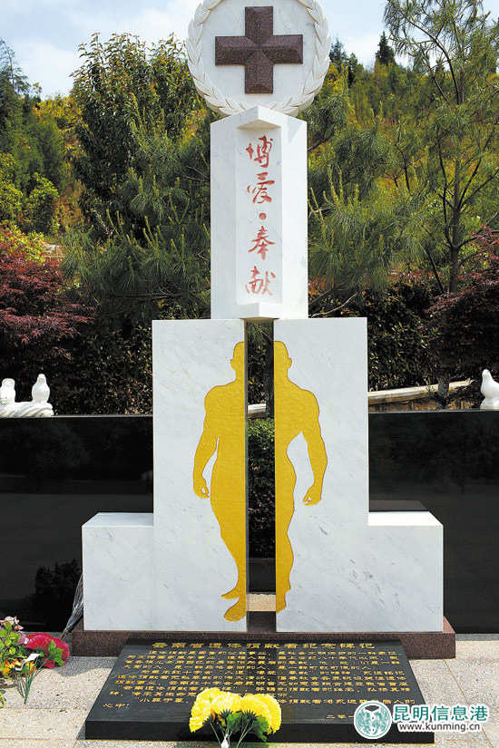 2011年4月,由云南省红十字会和昆明晋龙如意园联合建立的、云南省第一座“云南省遗体捐献者纪念碑”落户晋龙如意园,首批38名捐献遗体的爱心人士的名字被铭刻上纪念碑供人们追思、悼念。3年过去,昨天看到,纪念碑上已经刻上了278名遗体捐献者的名字。