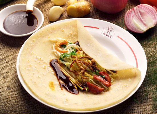 清明吃润饼,在潮汕、福建和台湾很盛行,其实“润饼”的正名还是春饼。泉州、厦门的“润饼”以面粉为原料擦制烘成薄皮,再卷胡萝卜丝、肉丝、蚵煎、香菜等混锅菜肴,制食皆简单,吃起来清香可口。晋江的“润饼”复杂得多,包馅儿多种多样,甚至能摆得满满一桌,你想得到想不到的都可能在里面出现:豌豆、豆芽、豆干、鱼丸片、虾仁、肉丁、海蛎煎、萝卜菜、油酥海苔、油煎蛋丝、花生、香菜、蒜丝……