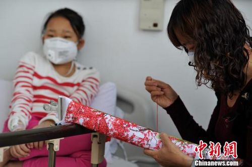 旁边刺十字绣的母亲转过头去抹了抹眼泪。她哽咽着告诉记者,“每次化疗要做两到三次骨穿和腰穿,成年人都受不了。”