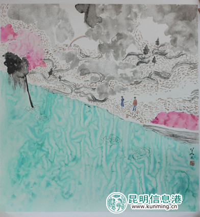 昆明信息港讯 记者王素晶 五月伊始,在云南大学研究生画室里初见吴若木。如果不是之前有了解,很难想象底蕴深厚、气势恢宏的那些国画作品是出自一位88年生、外形瘦小的青年艺术家之手。在深入交谈了之后,不得不承认,怀有一颗浪漫少女心的吴若木能在严肃庄重的写意画中融入浪漫色彩元素一点也不意外。画室里整齐摆放的几张大桌上摆着各种调好或没调好的颜料盘,四面墙壁挂满了画作,一位导师在和学生亲切交谈,屋子里荡漾着时而欢快时而激昂的伴奏乐,弥漫着墨香和浓厚的艺术气息。