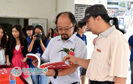 据介绍,本次毕业设计展涉及环境艺术设计、视觉传达设计、服装与服饰设计、动画设计、建筑景观动画方向等专业。在教学楼一条条治学标语下, 云南艺术学院文华学院2014届毕业生设计展的红色背景墙分外惹眼,一条红毯铺就的T台上,戏剧系模特班的帅哥美女穿着服装设计毕业生的作品正在走秀。以环保极简为主题的、以复古民族绣花配上墨绿色环保材质的、以太空棉为材料配上棉麻布料的、以少数民族绣片作花样的、以森林童话动物为原型的……各式各样的服装看得人眼花缭乱,应接不暇。当每组作品展示完,设计者亮相时,现场都会响起热烈的掌声,一捧捧鲜花、一个个毛绒玩具被送到手中。围观的学生将百平米的小广场围得里三层外三层,有的坐在地上看,有的夹在花坛边踮脚看,有的爬到楼上走廊往下看,有的校工孩子骑在爸爸脖子上看……