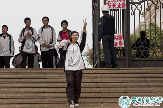 在昆八中门口,一个女生说,自己的语文试卷提前半小时就做完了。“题目不难,也没有什么难题。”