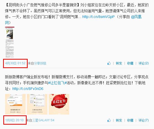 @昆明煤气 微博页面截图