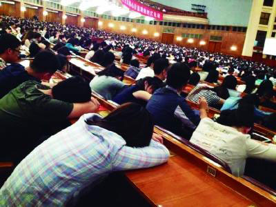 半个小时,他坚持站着作完了报告。工作人员怕出现意外,专门搬了把凳子坐在报告台上吴老的身后。此情此景让不少与会者动容。然而放眼台下,就在吴老做报告的过程中,大批后排的学生一片片趴在桌上睡去。当天,台下坐着的是首都多所高校近6000名新入学的研究生。