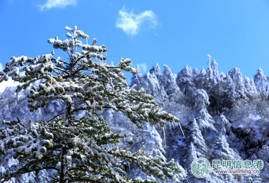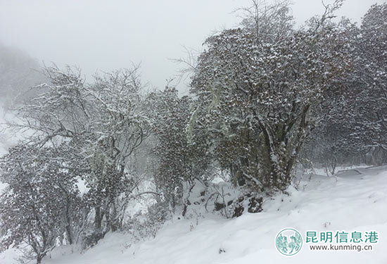 昆明轿子山迎来第二场雪 成冰雪世界