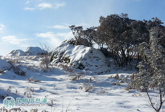 昆明信息港讯 通讯员胡柏琴 经过10月29日整晚的雪,位于昆明市“两区”的轿子山再次披上银装,成为晶莹剔透的冰雪世界。据悉,这是今年轿子山的第二场雪。相比10月21日的第一场雪,这次降雪量较大,积雪深度5-10厘米。与去年相比,今年的初雪提前了三天。现在到轿子雪山感受第一抹冬意正当时。