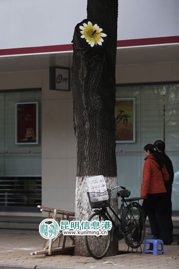 “在行道树上作画,真有创意!”“这样既遮住了树的伤疤,还形成了一道特色的风景。”现场围观的市民对孙松岩的行为一致表示赞同。“游客都那么爱昆明,身在这座城市,我们应该更加爱护和珍惜。”