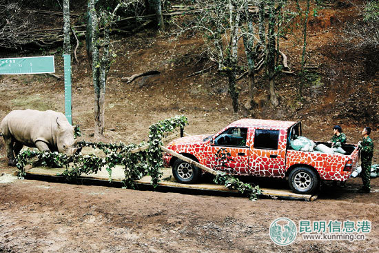 犀牛称重时,皮卡车变身成“秤砣” 都市时报 记者曲鸣飞/摄