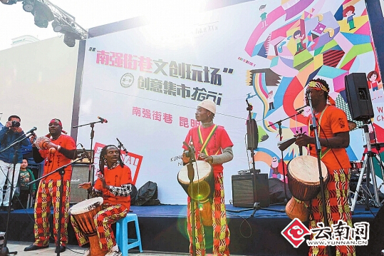昨日,位于昆明市中心的南强街人声鼎沸异常热闹,由五华区文产办指导,苦命伍乐文化传播有限公司主办的一场旨在提倡“创意青春、跃动城市,年轻创业”的第一季“南强街巷文创玩场”创意市集及街头艺术活动开幕,在昆明市中心的商业黄金地段奏响青春的节奏,悦动着年轻人新奇的文化创意和街头艺术展演,为昆明的中心商业区抹上了一笔华丽的姿彩。