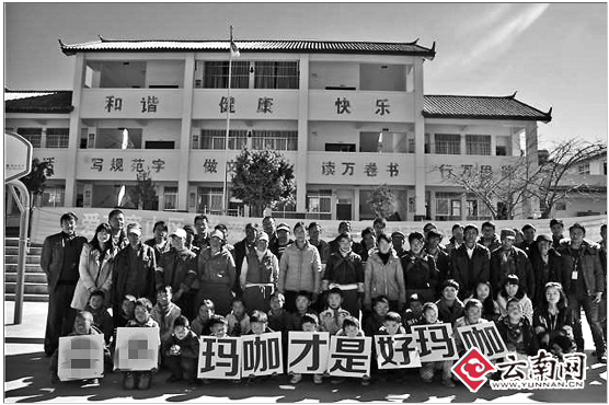 据了解,高举“XX玛咖才是好玛咖”广告牌的小学生所在地,是丽江境内的高寒贫困山区,被列为云南省整体推进扶贫开发试点乡。日前一天下午,丽江一本土企业以“冬日送温暖关爱行动”为主题,为这个乡7所完小的21个贫困学生家庭开展捐资助学,送去价值3万元的爱心物资。活动中,受助小学生和家长以及在校老师一起合影,企业方按计划将准备好的“XX玛咖才是好玛咖”广告牌,让前排的小学生举着。本来是感人的爱心活动,突然上演了一场“校园玛咖秀”,图片被当地一家网络媒体随爱心活动同时公开发布。