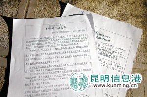 玉溪市公安局红塔分局对上访女子们做出的行政处罚决定书 本版图片 都市时报首席记者 张玉杰/摄