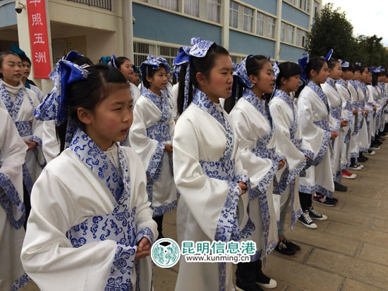 昆明信息港讯 记者刘佳妮 1月5日,呈贡区实验学校的师生们穿着统一汉服齐聚在一尊被红布遮盖的雕像前,共同见证中国儒家学派创始人——孔子雕像的揭幕仪式,百名学子齐颂《论语》,以先贤雕像激励自己,共同祈愿社会和谐,国泰民安。