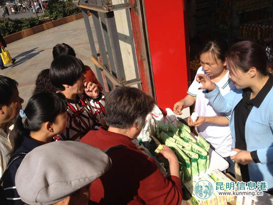 在昆明“网上家庭过期药品回收”活动现场,市民纷纷拿出手机,刷二维码了解活动详情。据悉,本次过期药品回收活动将在三明鑫疆安宁市连然街店、三明鑫疆人民东路大药房、三明鑫疆西园路店持续进行三天,3月15日结束。
