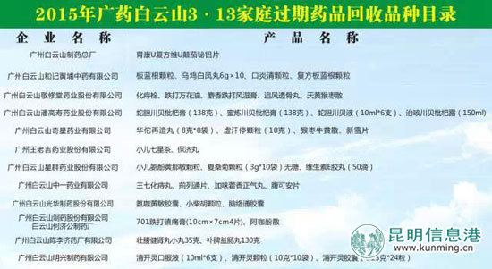 昆明信息港讯 记者张俊 “广药白云山 践行中国蓝”全球首创“网上家庭过期药品回收”活动于2015年3月13日上午在昆明市人民东路三明鑫疆大药房启动,同时官方微信查询平台开启,市民输入所在城市即可查询过期药品回收地点。