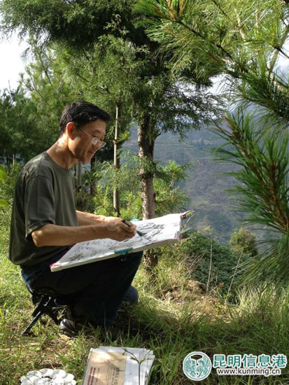 研习书画以来,寇子皓每天坚持临帖练功3小时,数十年如一日临池不断。从上世纪90年代中期开始,寇子皓每年都会花至少3个月的时间用来写生,几乎走遍了云南的名山大川。除此之外,他还喜欢看书,尤其是诗和明清小说,家里的书光运送就要花3大车,约莫340多箱。而到现在,寇子皓已经积累了数以万计的写生稿和影像资料,足够整理上20余年。