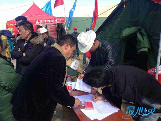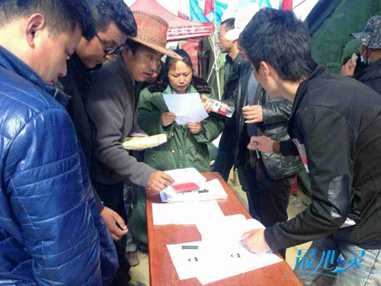 聂拉木县抗震救灾指挥部在给樟木口岸的受灾商户发放返乡差旅费