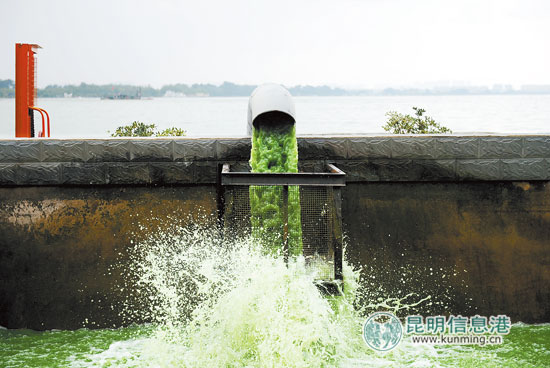 “自滇池外海北部6月出现蓝藻水华富集后,滇投公司所属龙门藻水分离站及所有移动除藻打捞船全天候运行,并对现有移动除藻设备进行及时调度,在滇池外海北岸近岸带布置4艘清藻船和6套除藻平台,重点加强滇池外海北岸沿线蓝藻收集处置能力。”滇投公司下属昆明泛亚湖泊综合治理有限公司经理杭利民介绍,“在海埂公园沿线格兰特码头、水文站、中门、西门4个地点新建的蓝藻收集口也在6月投入使用,这样一来,富藻水的收集范围进一步扩大,仅4个收集口每天就能收集17.6万方富藻水。”