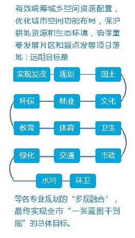 包括建立“三个一”基本体系:建立统一的空间规划体系“一张图”、建立统一的规划信息管理“一个平台”、建立多部门参与规划的“一个协调机制”。