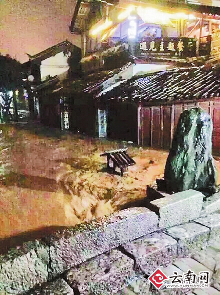 昨日一进古城,地上到处是黄色泥浆,工作人员拿着高压水枪和扫帚冲刷着地面,各客栈、商铺的老板也拿着水桶和水管冲洗自家门前的泥浆。一家餐馆负责人黎先生向记者透露,“我们门前这条小河的水凌晨都漫出来了,把门前这个木桥都给冲歪了,桥上还有两盆80多斤重的盆栽,也被水冲走了,到现在都没找到!说真的,来丽江这么多年还从没见过这么大的雨,太吓人了!”