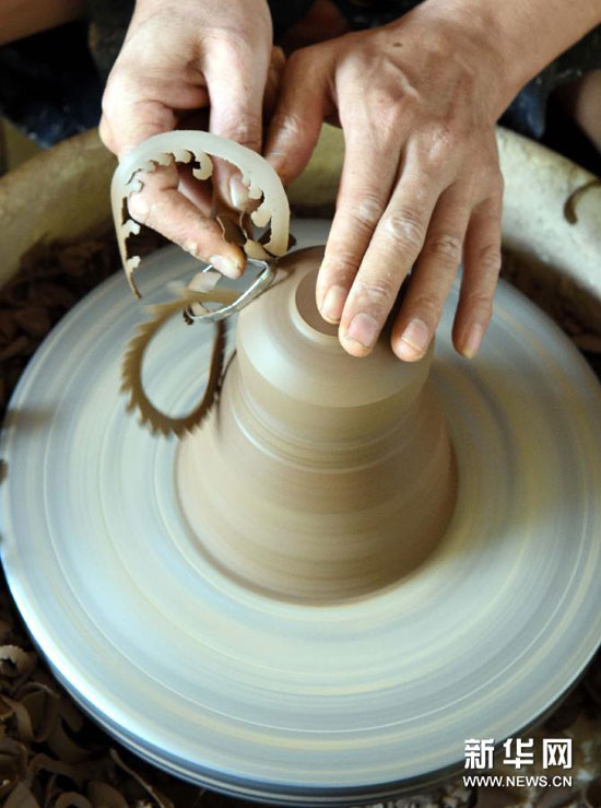 流传千年的手工技艺——云南西双版纳傣族慢轮制陶技艺是国家级非物质文化遗产。在“云南省陶瓷工艺大师”傣族慢轮制陶第四代传承人玉章凤的景洪博宫沙湾手工作坊里,由傣陶制成的茶罐、灯罩、锅碗琳琅满目,涵盖了从生活用品到现代装饰品的近百个品种,产品远销国内外。(新华网图片 杨宗友 摄)