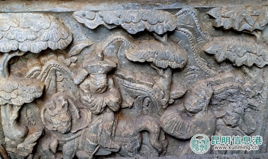 雕刻在石头上的民俗故事场景 首席摄影记者林坚/摄