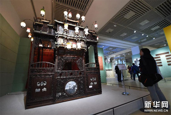 10月29日,来自江苏苏州的近代乐器小摆件(下)等戏曲文物在展厅展出 孙参/摄